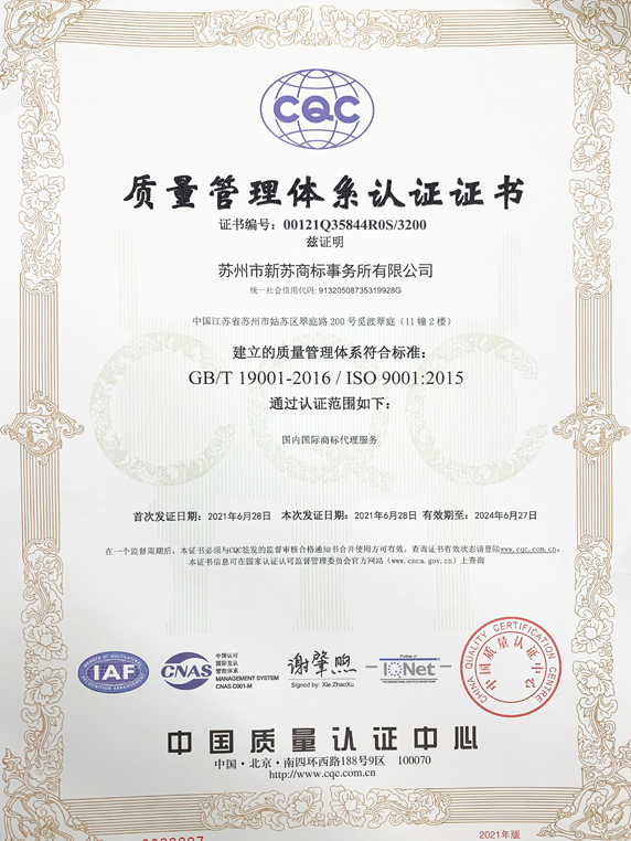 質(zhì)量管理體系認(rèn)證證書